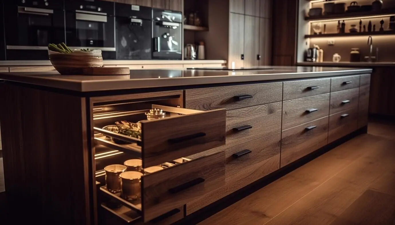 Culinary spaces gather mess and movement; calm depends on invisibility. Appliance garages, pocket doors, and lift-up fronts hide tools at counter height. Deep drawers with dividers prevent visual chaos, while panel-ready fronts camouflage refrigerators and dishwashers, letting the room read as furniture rather than machinery.